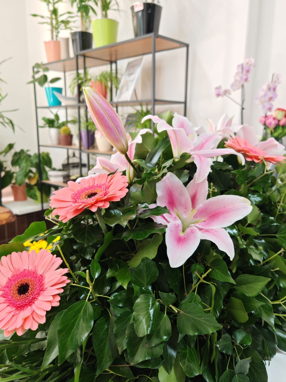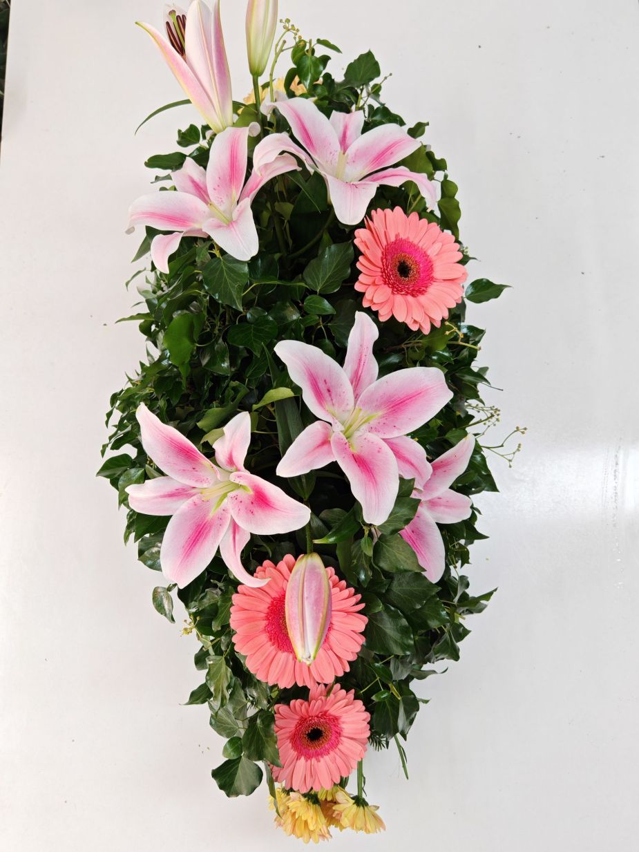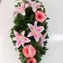 Suza izređena od roze ljiljan orijentala sa ružičastim gerberom. Roze ljiljan predstavlja sažaljenje, dok ružičasti gerber izražava zahvalnost za lepe trenutke.